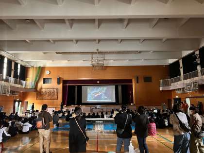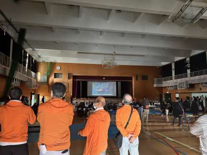 アルファ米が炊き上がるまでは、映像にて防災学習をすすめています。