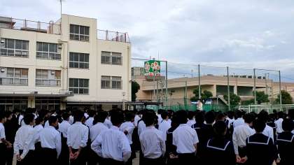 中庭にて全校集会がおこなわれました。