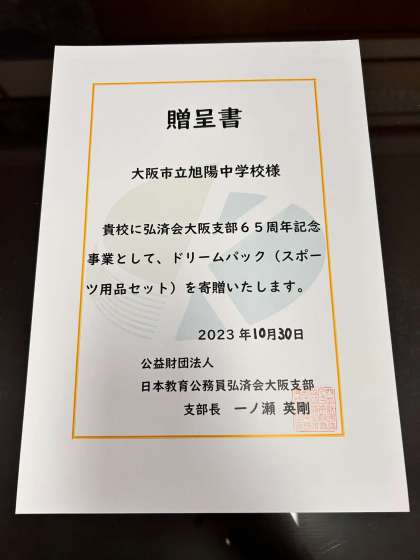 大阪教育公務員弘済会より、陸上部にドリームパック(ハードル・メジャー)が贈呈されました。