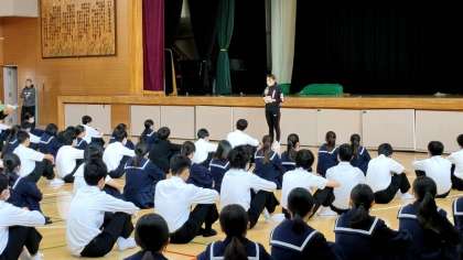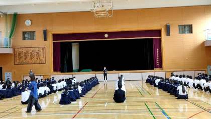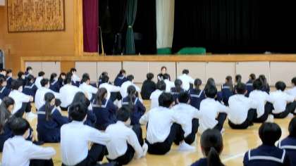 数名の生徒から職場体験の感想を聞き、職場体験で得た経験を残り少ない2年生での時間を充実させ、限りある時間を大切にしてもらいたいと講話がありました。