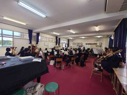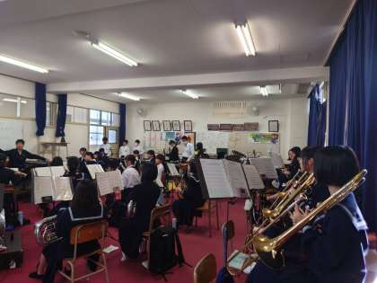 11月11日、阿倍野中学校で吹奏楽部が合同練習をしました。3年生が引退した後、これからどのような練習をしたら良いかを、基礎練習・曲練習共に教えていただきました。