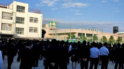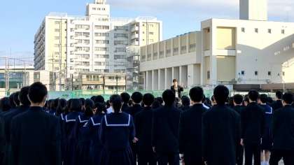 中庭にて全校集会をおこないました。