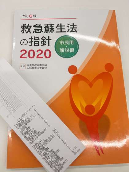 大阪消防振興協会にて、「応急手当普及員講習」を、教職員研修のために、心肺蘇生法(胸骨圧迫等)やAED、三角巾の使い方(止血・被覆・固定包帯法)を中心に受講いたしました。