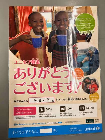 昨日の全校集会にて、旭陽中学校に贈られた感謝状は、正門に展示しています。
