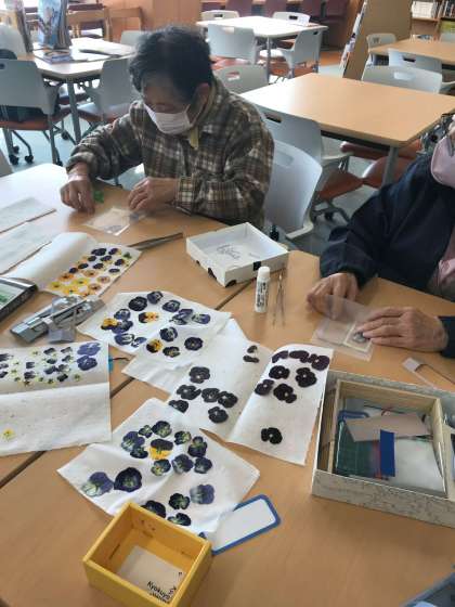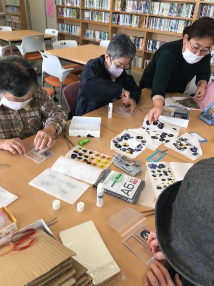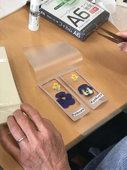 元気アップコーディネーターさんとボランティアのみなさんが、旭陽中で秋から冬に育った花を使って、今年度2回目のしおりを作ってくださいました。