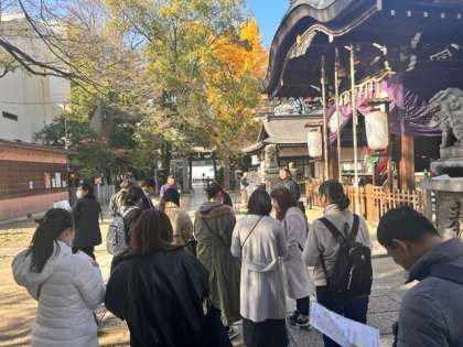 御幸森神社では、渡来人の歴史や碑文の意味、王仁博士などについて学びました。