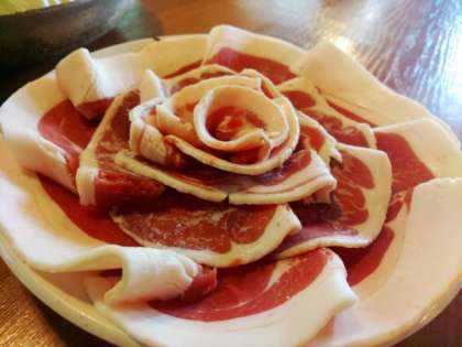 「ぼたん」とは、イノシシの肉をお皿に並べる形が牡丹の花に似ているからです。