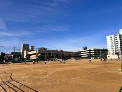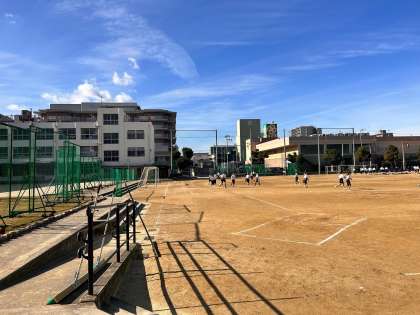 冷たい風にも負けず、子どもたちは持久走に取り組んでいます。