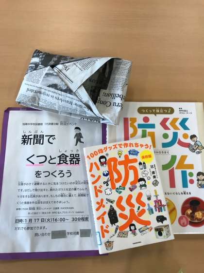 次回1月の読書活動は17日(火)に「新聞で靴と食器を作ろう」を予定しています。
