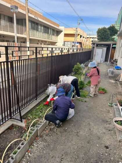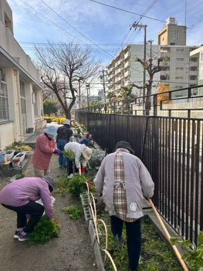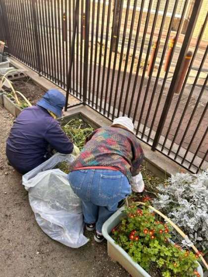西館裏にある菜園を、ボランティアの方々が丁寧に整えています。