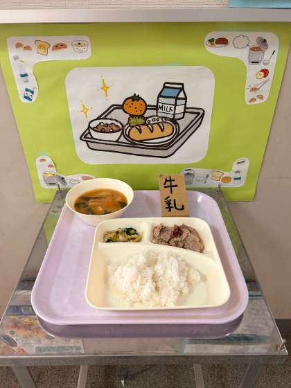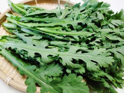 ・給食では、地産地消の一つとして、大阪で栽培、収穫された菊菜を使っています。