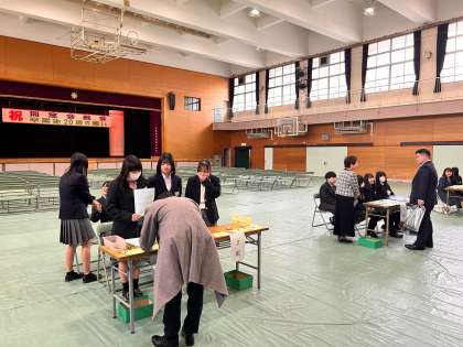 受付のお手伝いは、昨年に旭陽中学校を卒業した方々がおこなっています。