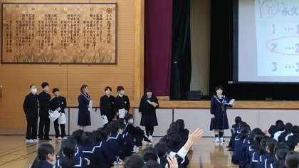 保健委員のみなさんが、役割を分担して発表しています。