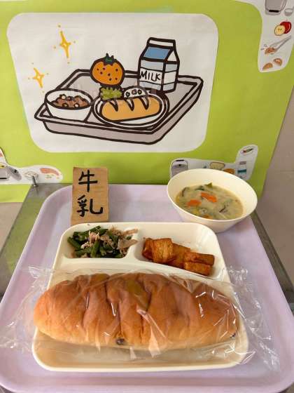 ・戦後、アメリカの民間団体により給食用物資の寄贈を受け、再開されました。