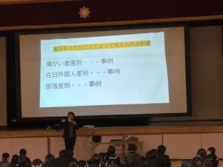 講師の方をお招きし、3年生は部落問題学習に取り組みました。