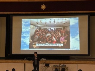 生徒は静かにプロジェクターを見ながら講話を聞いていました。