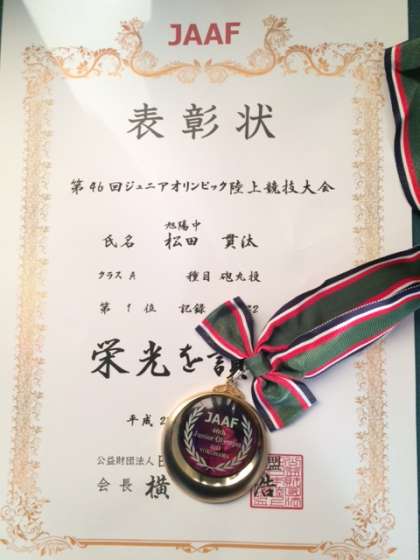 ジュニアオリンピック陸上競技大会優勝〜砲丸投げ〜
