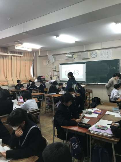 本日行われた1年3組のグループ代表による発表と、1年4組のグループ発表の様子です。