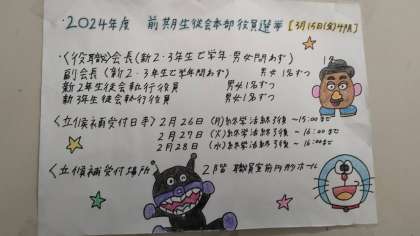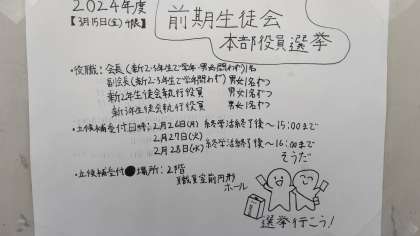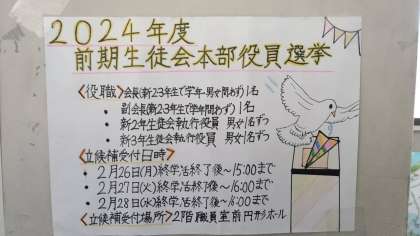 役職は、会長・副会長・新2年生生徒会執行役員・新3年生生徒会執行役員になります。
