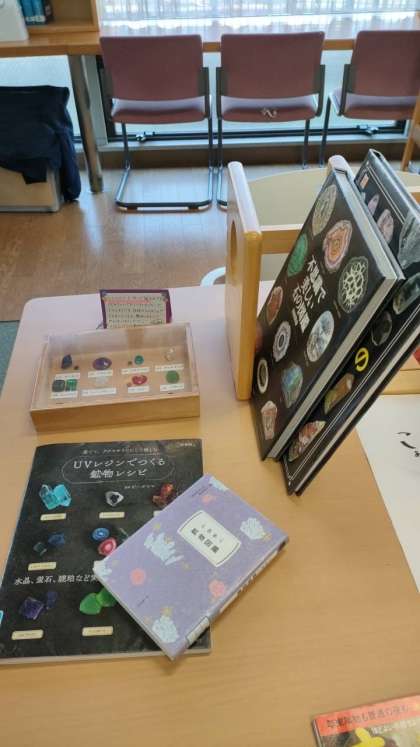 鉱物関連の本と一緒に、2月末まで館内で展示することにしました。