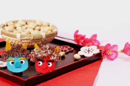 豆は「摩滅」に通じ、鬼に豆をぶつけることで、鬼を追い払い、一年の無病・息災を願うという意味があります。