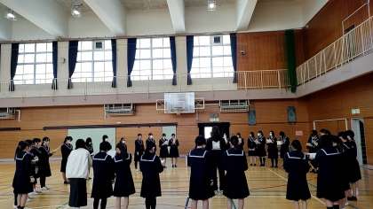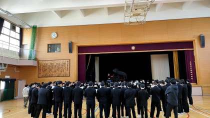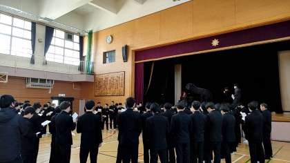 体育館では、3年生が卒業証書授与式での合唱に取り組んでいます。