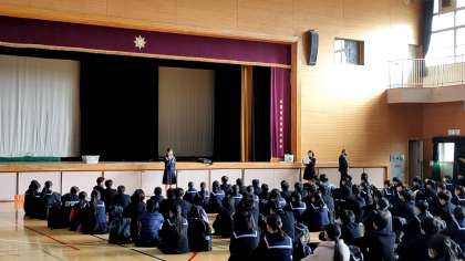 代表生徒が挨拶をおこない、委員長から最終の説明が始まっています。