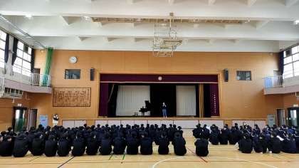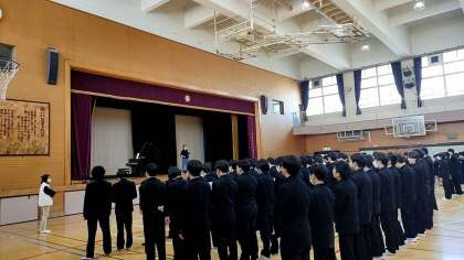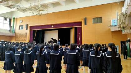 卒業証書授与式に向けて、学年全体で合唱練習に取り組んでいます。