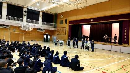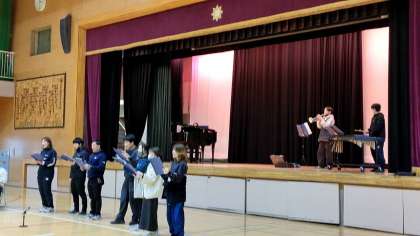 最後は、教員から子どもたちへ「糸」の演奏と合唱のプレゼントです!