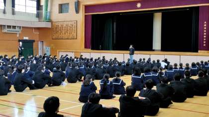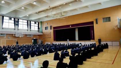 3限目に、1年生は最後の学年集会を体育館にておこないました。