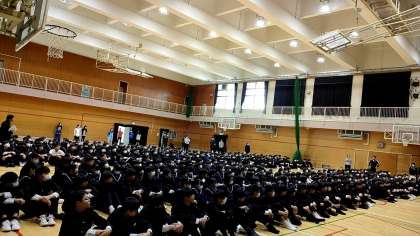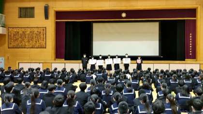 まず、生徒会から「旭陽中学校スマホルール5カ条」が発表されました。