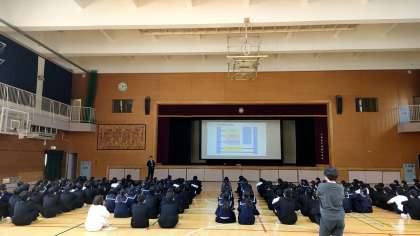 体育館では、2年生が進路学習をおこないました。