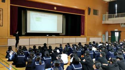2年生のみなさんは、進路指導主事の講話を真剣に聞いていました。