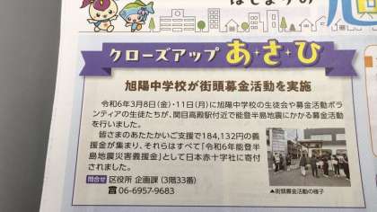広報 あさひ5月号に、旭陽中学校の募金活動が