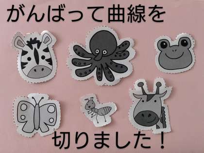 先日は、「目と手の協応」が求められる課題として、ハサミの練習をしました。線に沿って切るためには、目が手の動きをリードしなければいけません。両手の動きをうまく協応させながら作業をすることができていました!