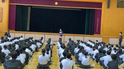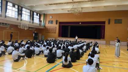 体育館では、1年生が学年集会をひらいています。