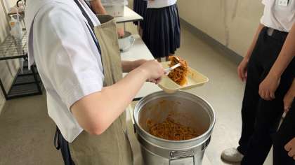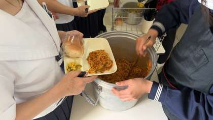 係り生徒が手際良く配膳しています。