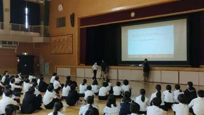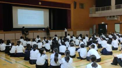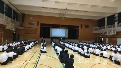 体育館では、2年生がモラロジー教育に取り組んでいます。