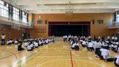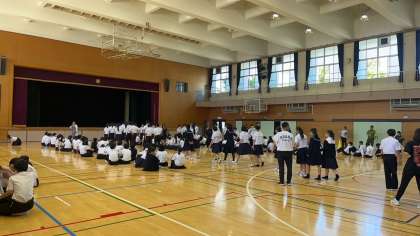 体育館では、3年生が修学旅行での班別行動の確認をしています。