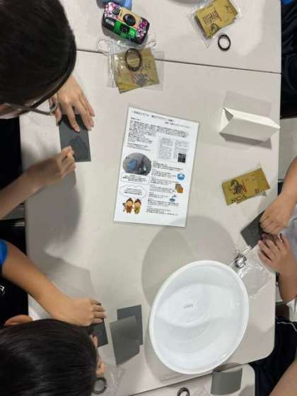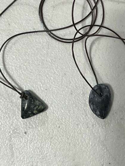 ラフティングと同時にクラフト体験も行いました。蛇紋岩をサンドペーパーで磨いて、光沢を出し縄文アクセサリーを作っていきます。