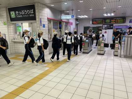 大阪城公園での全行程を終え、旭陽中学校へ帰ります。