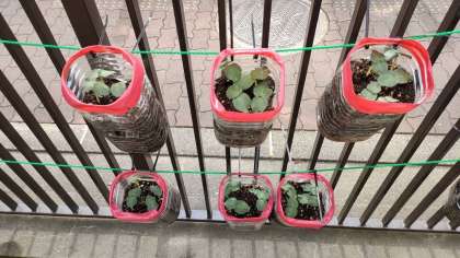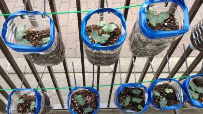 エコペットボトル栽培しているオクラの芽が出てきています。