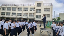 剣道部とソフトボール部の賞状の伝達を行いました。