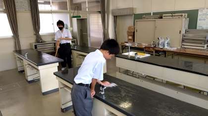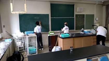 自然科学部が普段使用している教室や廊下等を、感謝の気持ちをこめて清掃しています!