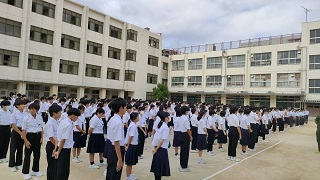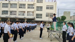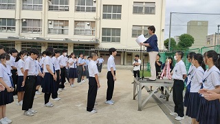 全校集会を行いました。剣道部と陸上部の表彰伝達を行いました。