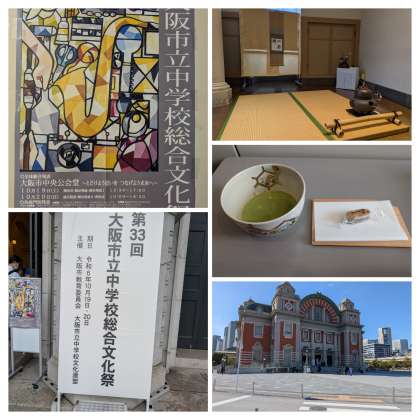 10月19日20日に中央公会堂で開会された総合文化祭に旭陽中学校の茶道部がお茶席4席を担当いたしました。