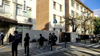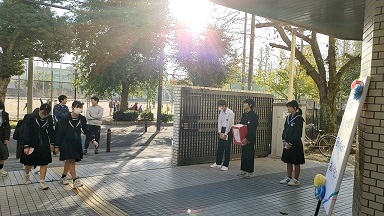 今日から、生徒会の代表生徒が赤い羽根募金への協力を呼びかけを行っています。