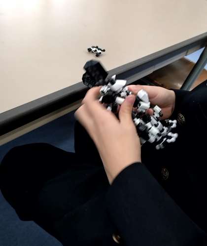 これはブロックを使った「自立活動」の様子です。ブロックを扱う時には、色や形の組み合わせを考えるため、思考力を育むと言われています。