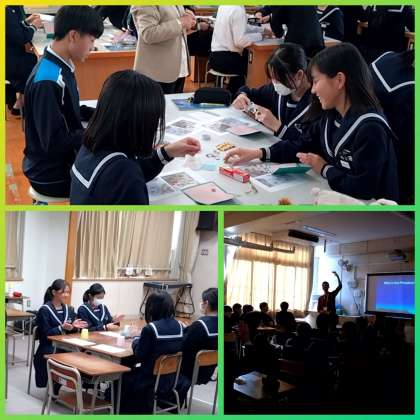 今日は、高校の先生方による「出前授業」が行われました!写真は、それぞれの授業の様子です。