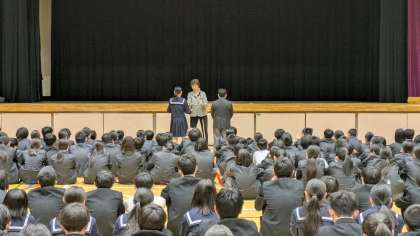 校長先生より、目標や計画を立てることの大切さや、今後、入学する新入生にとって良き手本となることに期待していることなどお話がありました。4月の始業式には元気な姿で登校することを願っています。